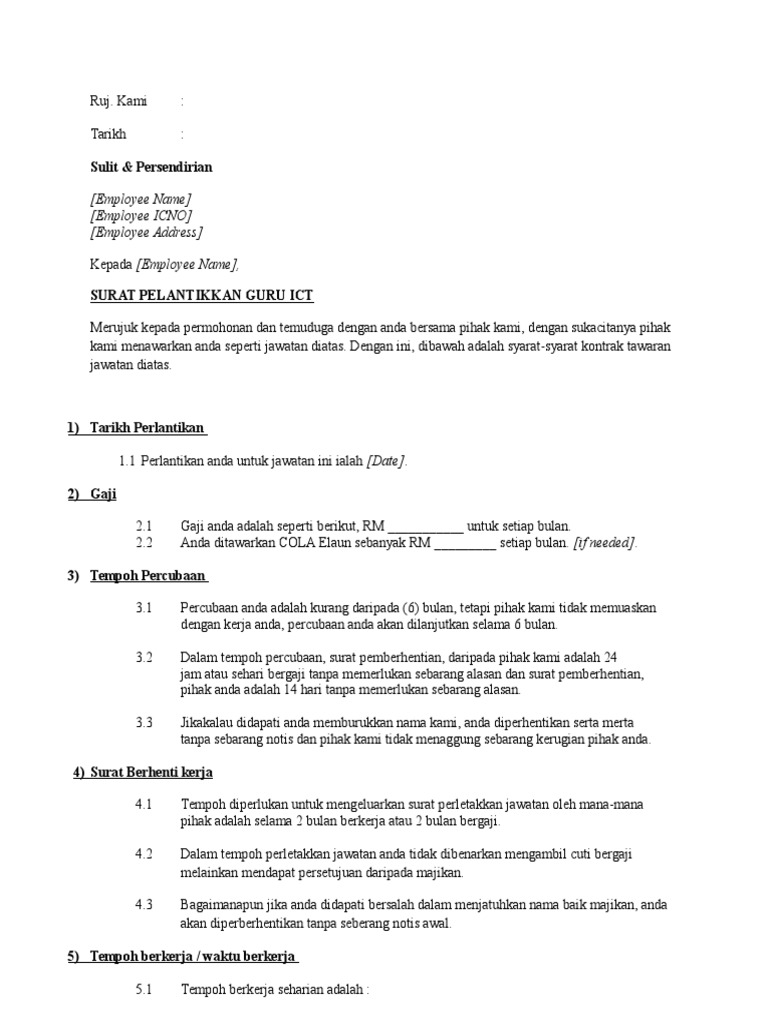 Notis Berhenti Kerja Dalam Tempoh Percubaan : Termination Of Employment Bm Version Pdf Document : Bolehkah kawan itu menuntut gaji untuk kerja sebulan itu?